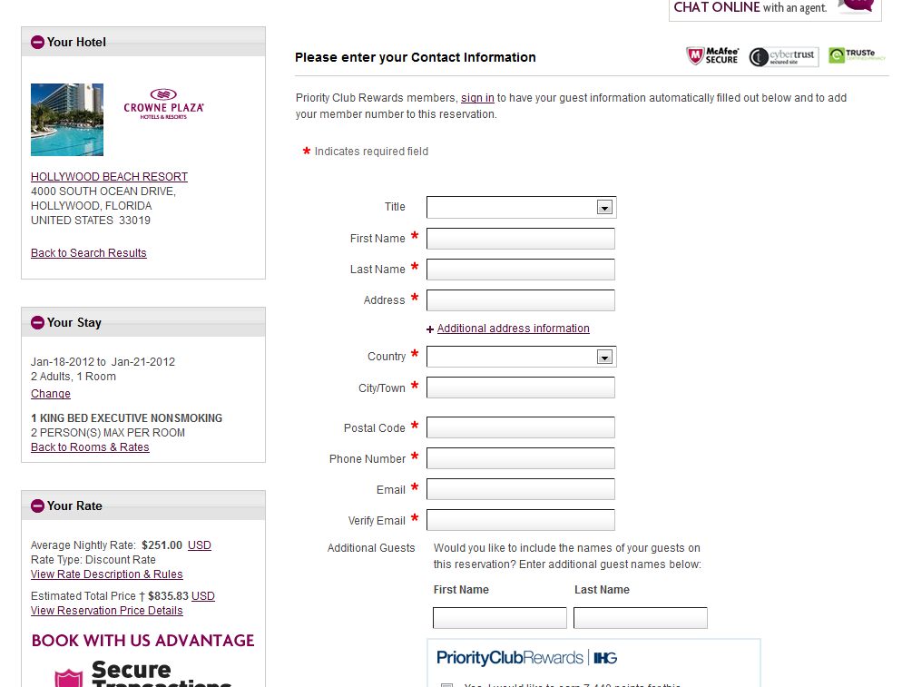 I found us a room at the Crown Plaza Hollywood beach Florida. I e-mailed the hotel and was given a mid-level upgrade from a standard king room to the executive floor king suite.