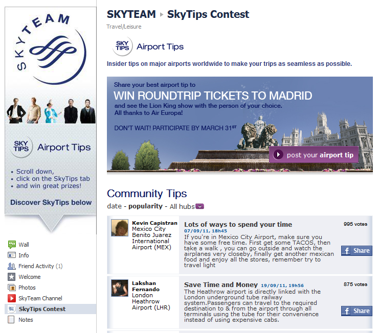 Y’all know I don’t like Facebook but they do have a ton of good giveaways! Case in point. Every single month Skyteam gives away some sort of nice free trip from the USA to Europe somewhere. All it takes is for you to come up with some SkyTips and then have as many people as you can like your idea. Here is the link for it.