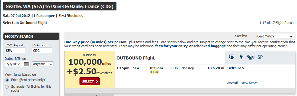 And if you do get stuck with it, you will end up with what Lucky at One Mile at a Time calls the perfect length flight with time enough to both sleep and enjoy the trip. Another idea would be to use the stop over option with Skymiles and enjoy a few summer days in Seattle if you have never been there for a visit, and then fly over to Paris a few days later.