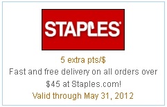 Also, this week I talked about the fact that you can redeem, for now, 100 Coke Rewards points for $20 off a SW Air flight. A good deal if you have 100 Coke Rewards points. If you drink Coke products anyway, you can buy a 24 pack at Staples for $11.99 (obviously not the best price in the world). Staples is a office supply store. So, if you use your INK BOLD, you can earn 10x points on the purchase via the Ultimate Rewards shopping site and even get free S&H.