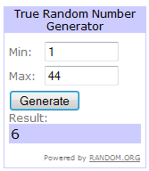 Since SF did NOT guess Top Gear, I did this, I kept doing Random.org until I hit one that did have Top Gear as the choice and you win the 1 time pass. That winner is # 6 George!