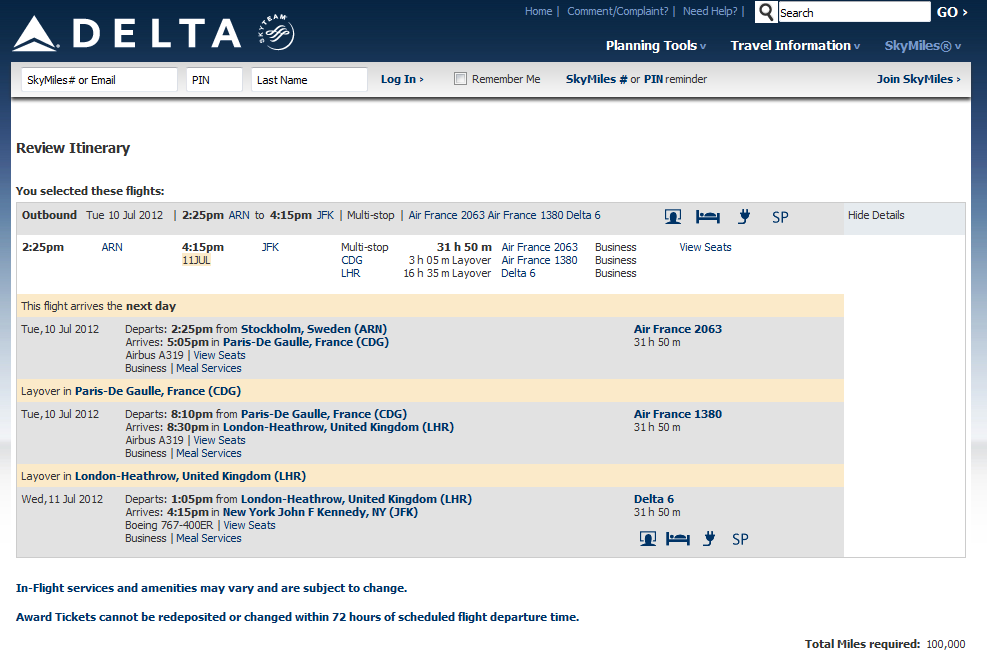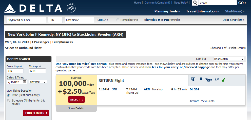 Have you ever thought about visiting Sweden? Many of my fellow BoardingArea bloggers have and can attest to the fact it is a beautiful county to visit. Not just that, but did you know that seasonally Delta flies a direct flight, DL202, from JFK-ARN (New York to Stockholm)? So what are you doing over the 4th of July weekend? Oh look, there are 100k Skymiles business class seats available on DL202 on the 4th!