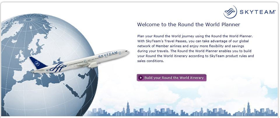 This could be a trip of a lifetime. You can go east to west or west to east. You can make up to 6 stops. You have a full year to complete the trip. You can travel on any Skyteam airline. There is even an interactive travel planner on Skyteam.com where you can, after you install Microsoft Silverlight, explore all the possibilities of where you want to go!