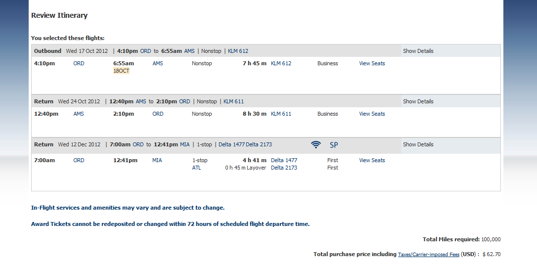 @DeltaPoints: Please show me an example of a standard award ticket with one stopover each way that prices out at low. (Let’s say US-Europe for 60K in economy or 100K in business.) I’ve given example of a ticket having one stopover each direction that is forced up to 145K since you can’t have two stopovers on a standard award. Yes, this is mildly off-topic, but you gave Kate incorrect advice above and I think it’s important to get things right for those who find this post down the road.. Heck, just give a screenshot of the itinerary you suggest in post 8 pricing out at 60K/100K. I’m quite happy to be proven wrong, as I’d love to get a stopover in each direction on a DL award. However, barring a schedule change that takes a sub-24-hour connection over 24 hours, it won’t work without paying more miles.