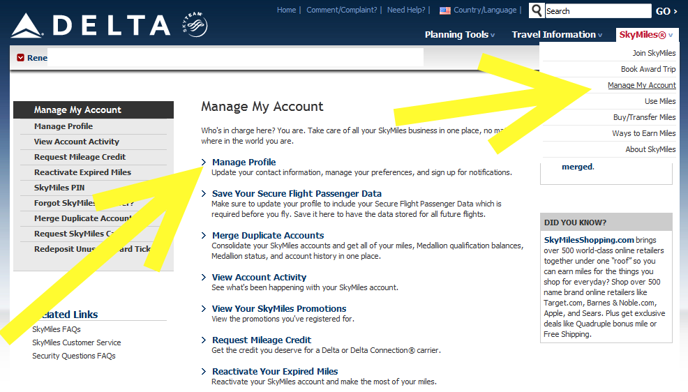 Step one is to log in to your Skymiles account and then do this: