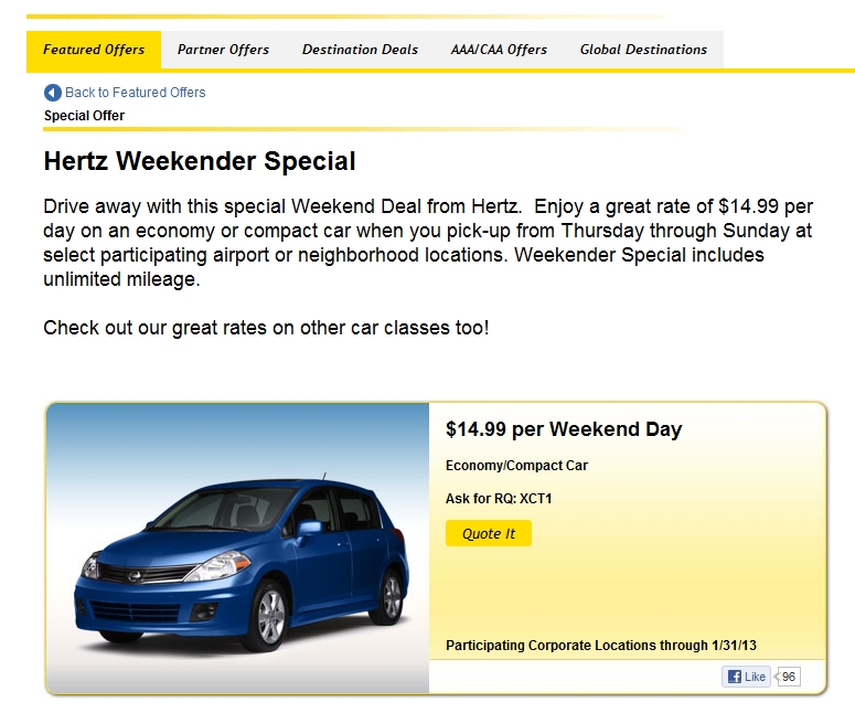 If you need a weekend car rental here are a few deals. The Hertz one is nice as you may be able to use coupons to make it even lower, but not when booking. Also keep in mind that if you pay with your DELTA AMEX RESERVE BUSINESS card that is part of the OPEN saving program you will get 5-10% off your bill at checkout – Sweet!