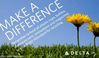 Going another step further in 2007, Delta launched a comprehensive in-flight recycling program to collect and divert not only aluminum cans, but also plastic beverage cups, plastic bottles, newspaper and magazines from landfills in 26 U.S. airports. Passengers, flight attendants, catering staff and cabin services successfully recycled approximately 1,108,000 pounds of material in 2010 and donated $35,797 through Delta’s Force for Global Good to Habitat for Humanity.