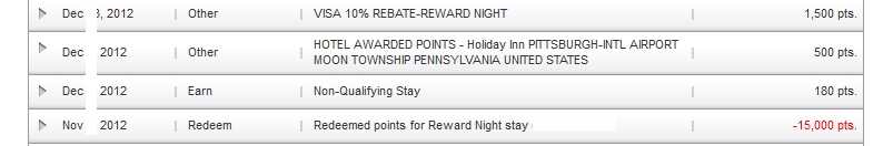 During my last set of Delta mileage runs from November I had initially booked for each run a night before at the SPG Four Points in PIT as the price was great in Starpoints to stay. Then after my first stay, that was far from acceptable, I quickly dumped reservation number two and opted to give the Holiday Inn PIT a try for 15,000 Priority Club points.