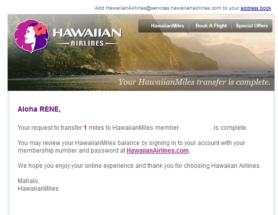 Seriously, anyone can send Hawaiian miles to ANYONE else in any amount you want up to 10 times maximum per calendar year as long you both, at the time, have a card.