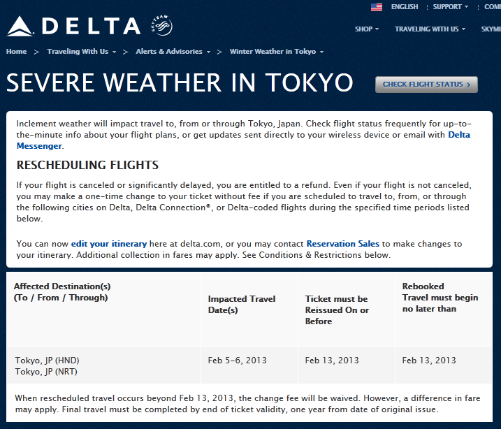 I am all about Snow in Salt Lake this week but if you are flying to Tokyo, JP (HND) or Tokyo, JP (NRT) tomorrow or Wednesday you had better check to make sure you can fly! – René