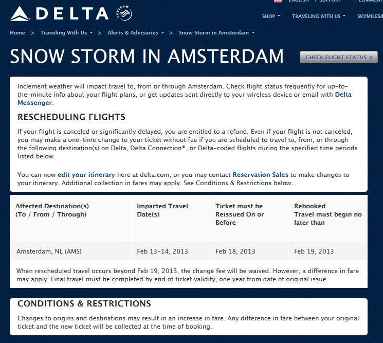 If you are going to be flying to AMS today, you may want to check with Delta to make sure your flights have not been canceled either to AMS or from AMS.
