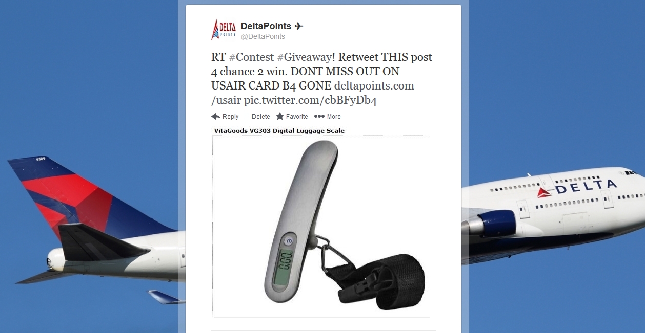 Time for a quick 24hr Twitter contest. All you have to do is retweet THIS tweet for a chance to win. Oh, and I will toss in a Delta Points luggage tag as well! If you don’t use twitter yet, shame on you! HERE is how you join (if for nothing else to use DeltaAssist) – René