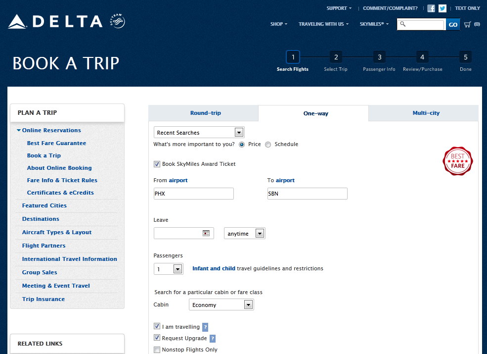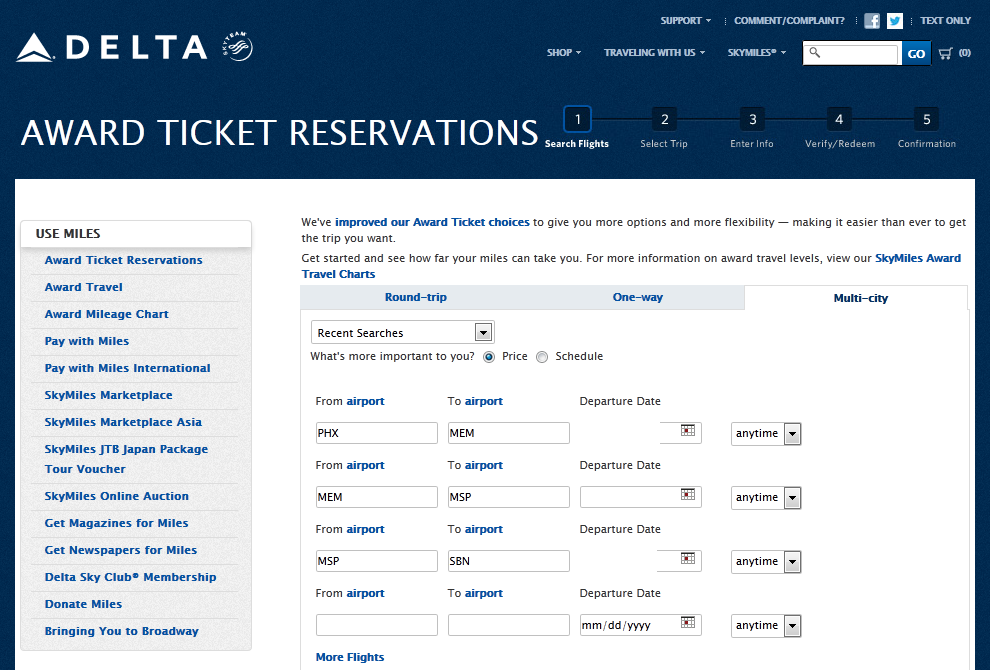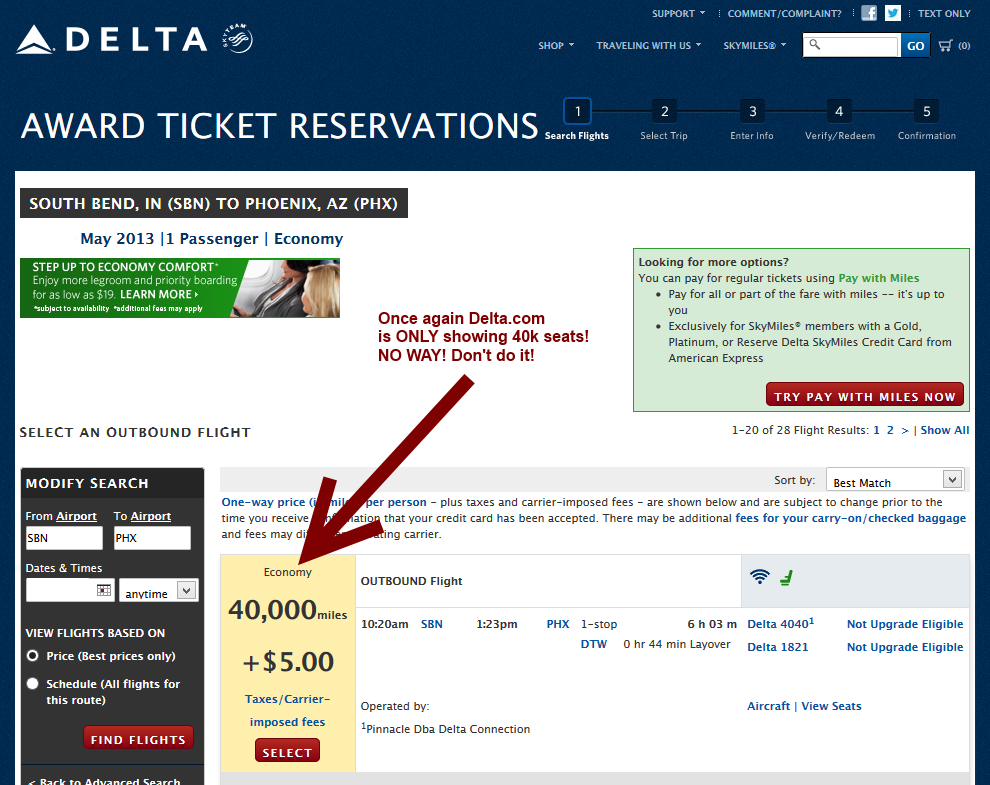 “I want to see any flights, on the date I want, that I can see low level seats on out of PHX to where ever Delta flies”