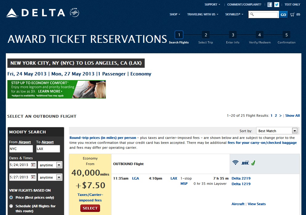 “I would rather redeem 45,000 Skymiles and fly in 1st class to Chicago”