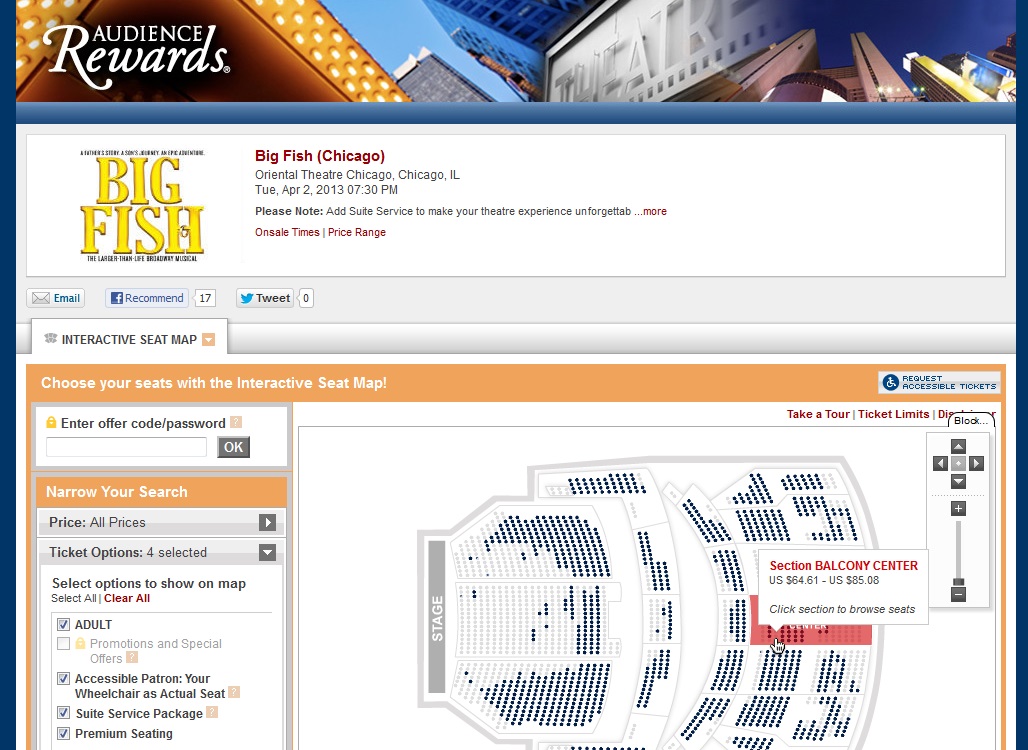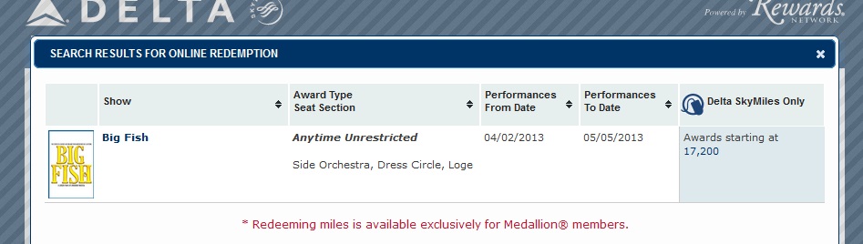So to redeem points it would cost 17,200 Skymiles. That does seem like a lot, $172.00 for a ticket. Maybe this is just an expensive show. Lets look.
