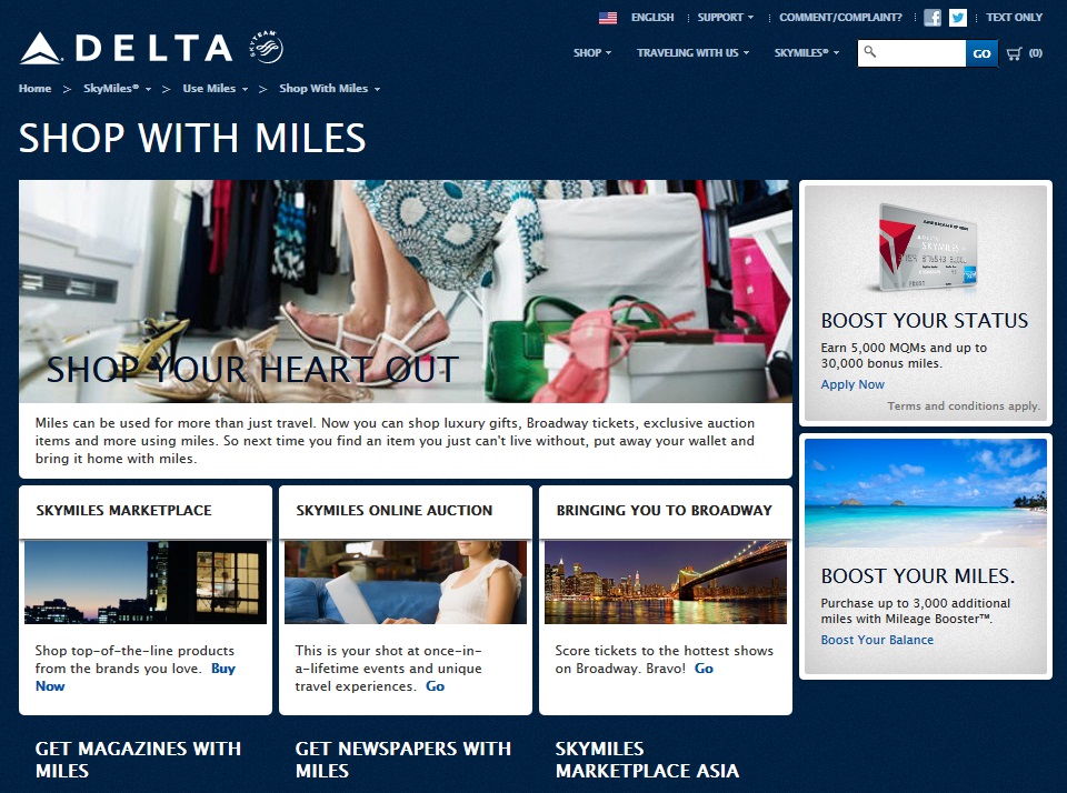 “Miles can be used for more than just travel. Now you can shop luxury gifts, Broadway tickets, exclusive auction items and more using miles. So next time you find an item you just can’t live without, put away your wallet and bring it home with miles.“
