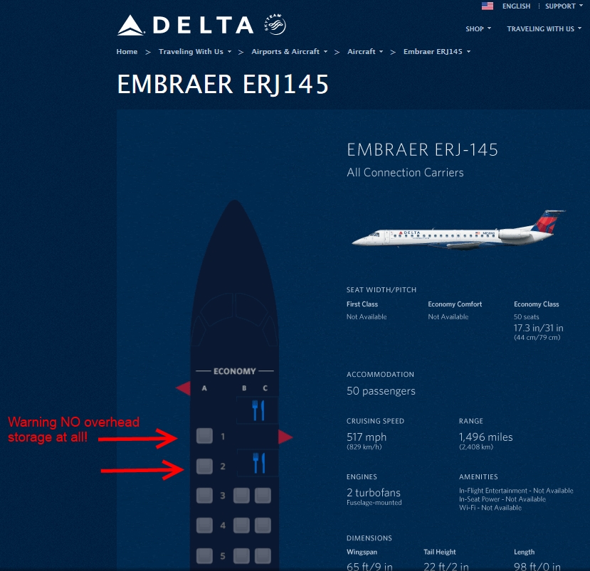 OK mini-rant over and now to what can help you in today’s post. If you have to be stuck on a regional jet there are some things to know. The first is overhead storage. I “like” row 1 on a CRJ as it does give you “some” extra leg room in B&C to stretch into the galley area. But, many times, the overhead for row 1 is full of first aid oxygen and for FA use so your bags could end up in row 2 or much worse. If you are going to sit in row 1, be sure you board #1. If not, pick row 2 to be safe.