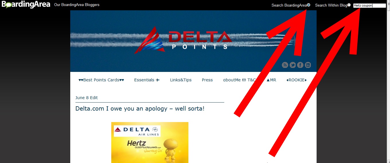 Last month I had a post about the fact that you should never start at Delta.com to rent a car because the codes do not always work and most times you can get a better deal with other codes. But you know, I owe Delta.com a very, very, small apology. Here is why.