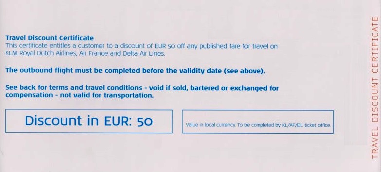 I got one of these from KLM because my checked luggage missed my connecting flight. I had a difficult time finding a customer service agent from Delta at my local airport (ATL) who knew how to process it. It took a full hour of my time – not sure the 25€ benefit was worth it.