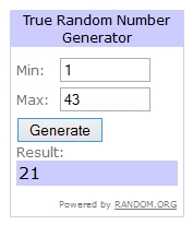 And our winner via Random.org is #21: LarsErikNYC