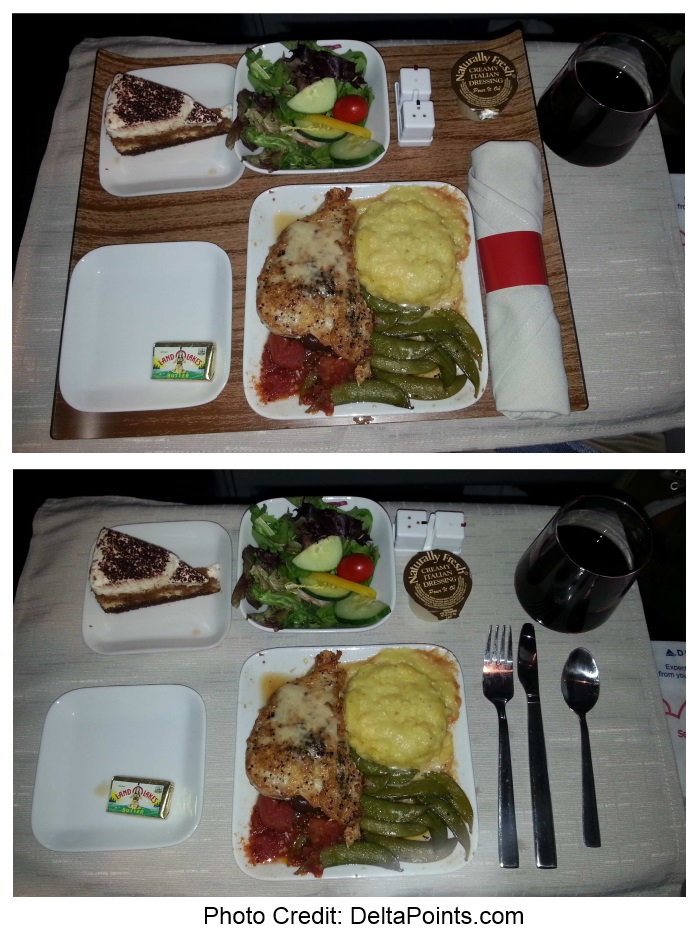 I had two choices for dinner. A chicken or a spicy pasta. I went with the Chicken. It was fine but one thing I wish Delta would do away with is the uber-ugly trays. Look how much nicer dinner looks without the “trailer” tray! Anyway, the flight was uneventful and I had a pleasant trip out with a 2 million miler with Delta.