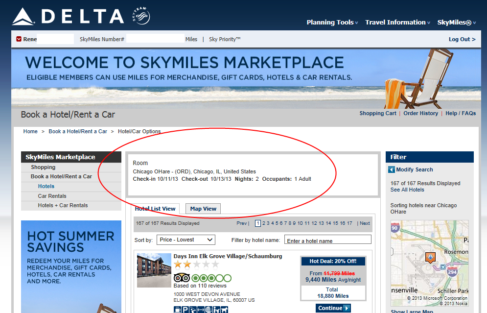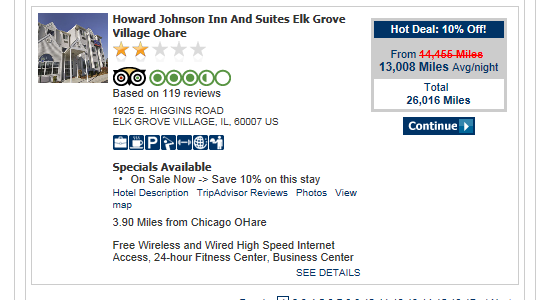 So let’s say you have one of the coveted seats at the sold out Chicago Seminars in a few weeks. You got a ticket for the event but did not get a hotel room at the host site. What do you do? Could you use some Skymiles to book a room? Let’s see what comes up.