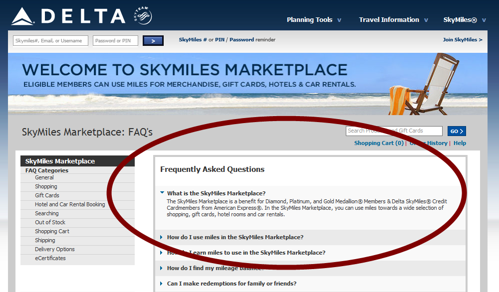 Renting a car, or paying for a hotel room is a function of the Skymiles Marketplace