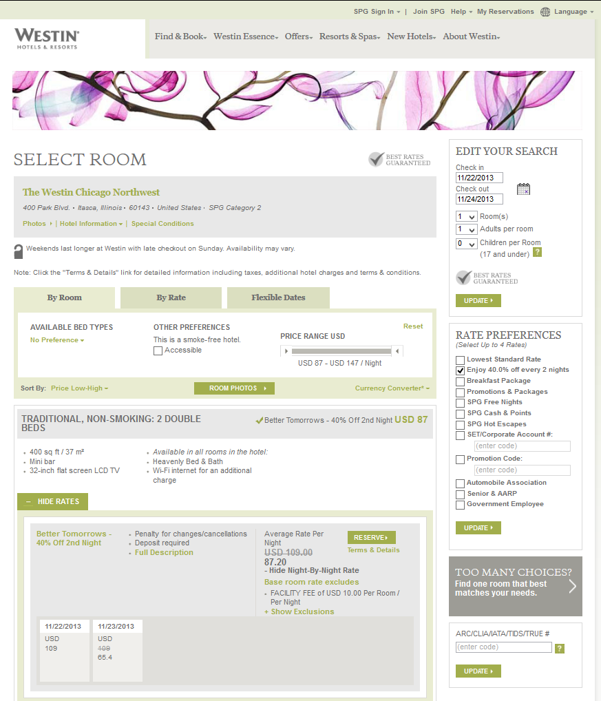 • These offers are based on Starwood’s best available unrestricted retail rates.