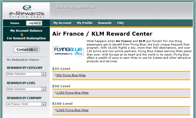 E-Rewards now has a link that will give you 500 Flying Blue points for “new” members, that is a new e-mail, once you complete your first survey from this link (tip if you have issues try another browser to sign up):