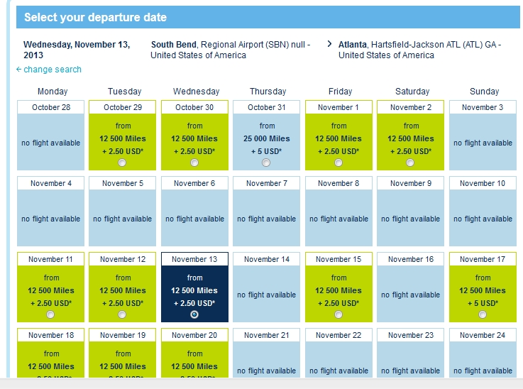 You can see there is reasonable available one-way from South Bend to Atlanta and I would be hard pressed to find space on Delta for most of these.