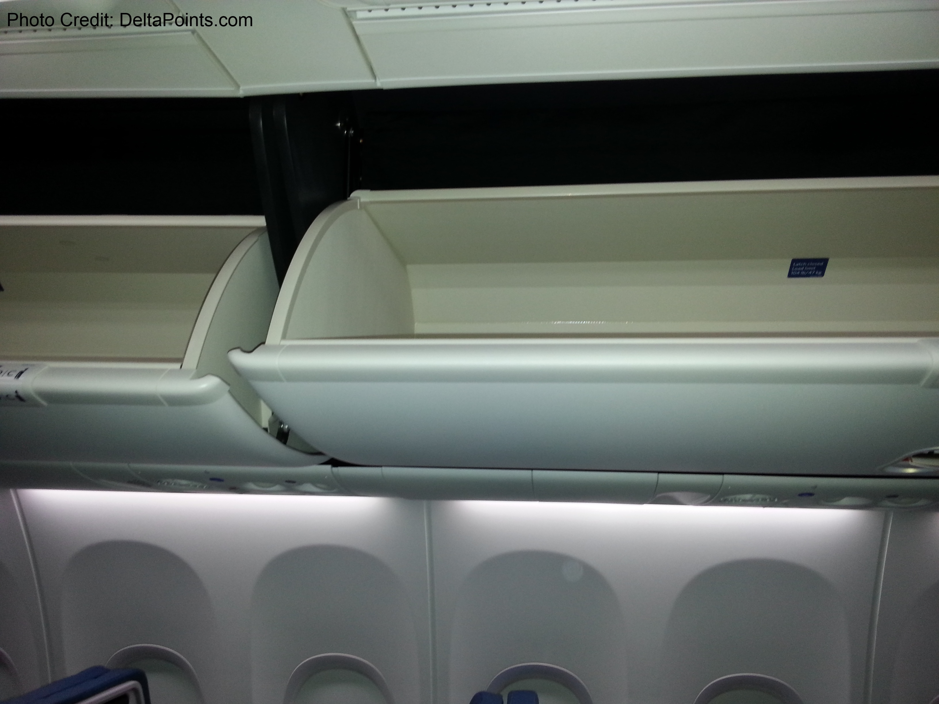 The overhead bins fold out of the way more and hold quite a bit.