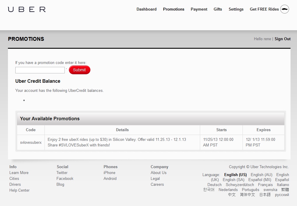 What: Two free uberX rides (up to $30 each) that begin or end in Silicon Valley area