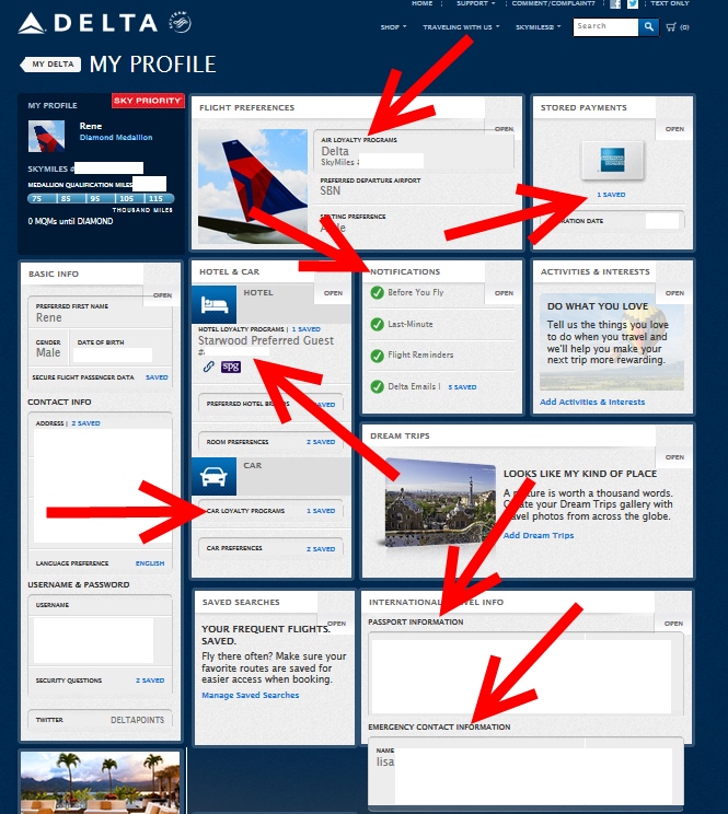 While you are at it, why not check your emergency contact, just in case, as well as some of your other preferences like car program you favor as well as your home airport etc.