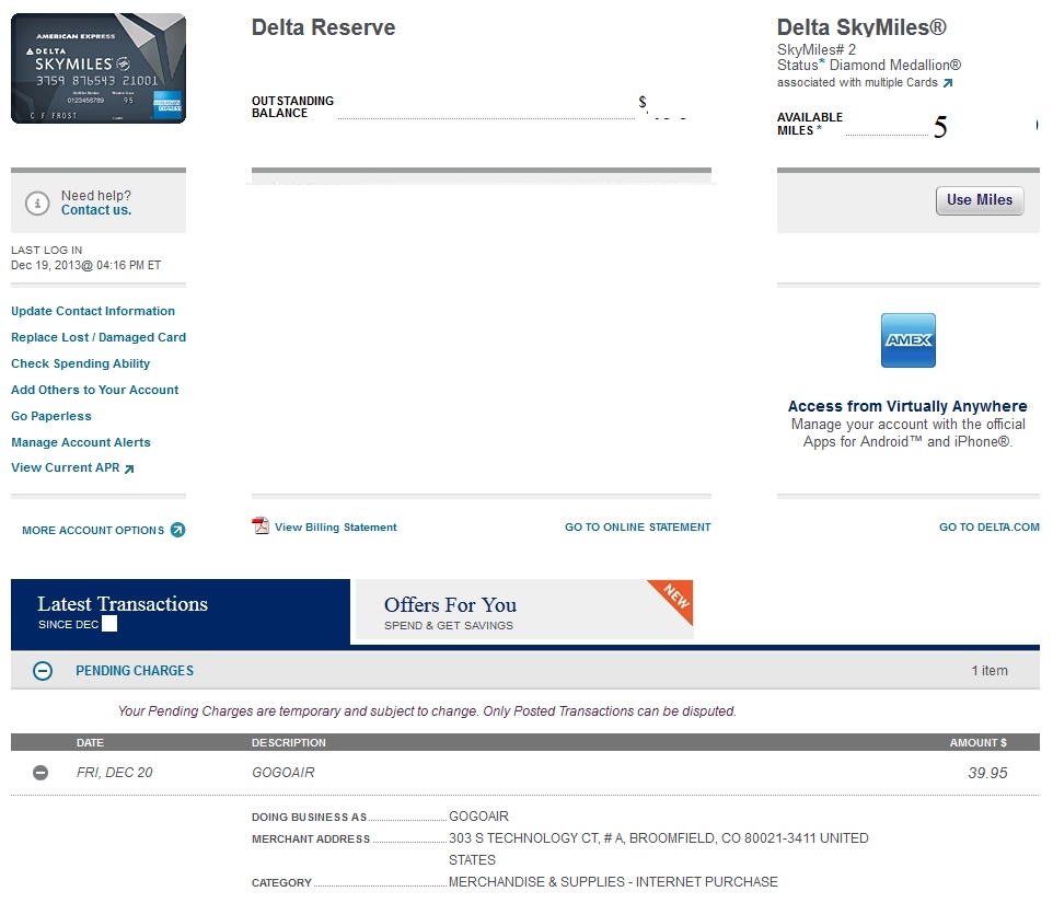As you can see from my Delta AMEX Reserve bill this morning I have a pending charge about to hit from GoGo – Ruh-Roh! I have been e-mailed nightmare stories from many readers about getting GoGo to credit back these types of charges and was not looking forward to my next chat with GoGo. But everything worked out great and the rep issued credit and saw the mistake from the previous rep in the chat from last month. No big deal.