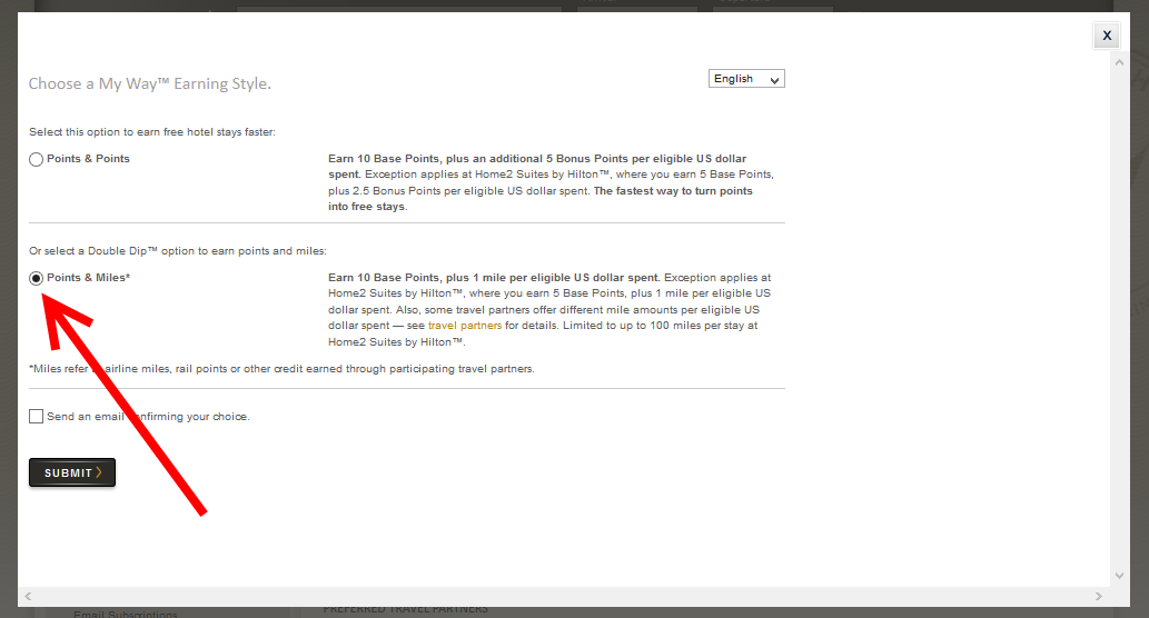 Notice what it says at the bottom of the promotion page. You must “Select Points & Miles at your Double Dip”. That – is a mouthful. How do you do that? Just follow these “simple” steps.
