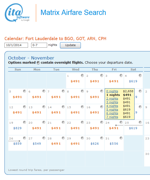 I am so in love with NAI that is Norwegian Airlines Int. as they are giving Delta some MAJOR price deals. Just look at this one. You will have to overnight but you can fly out after work Friday and back home Sunday and pick up some STAGGERING numbers in October! Take a look: