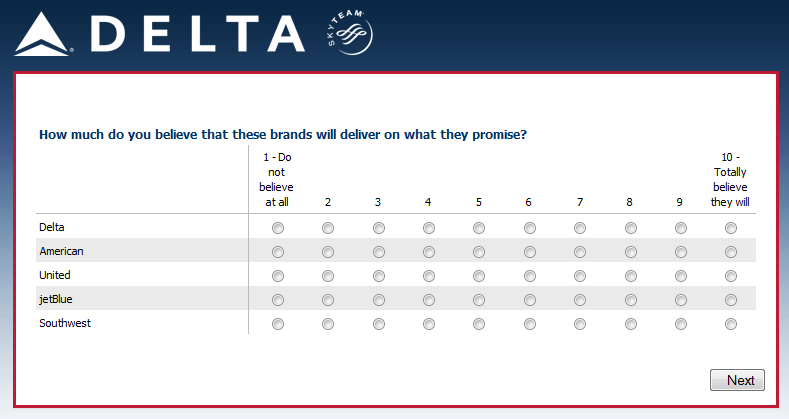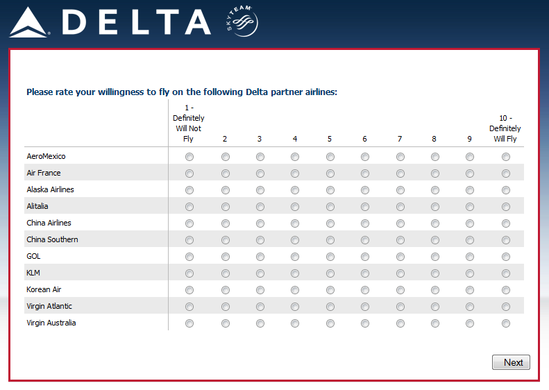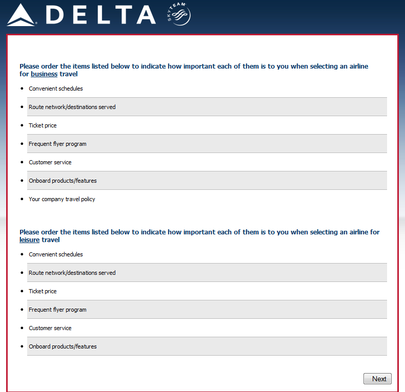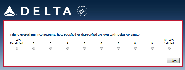 Your opinion is highly valued and your answers to the following questions will help ensure that Delta Air Lines best meets your needs.