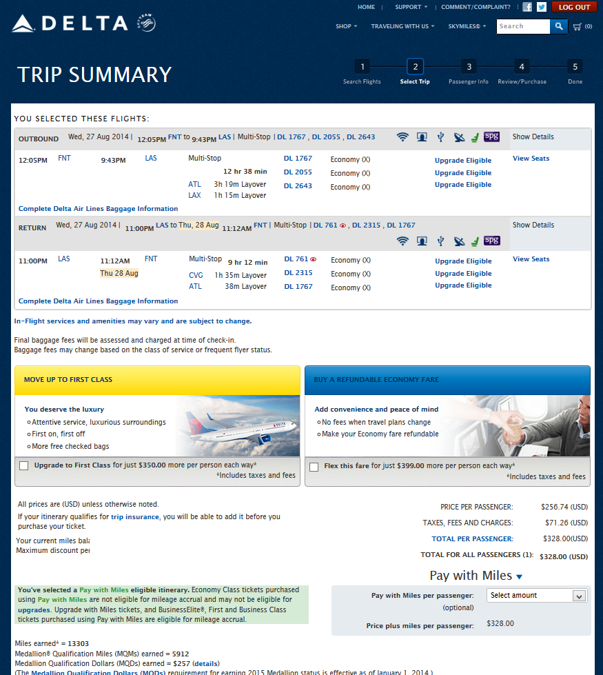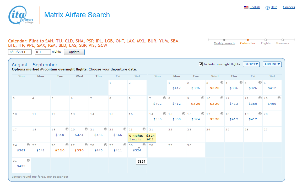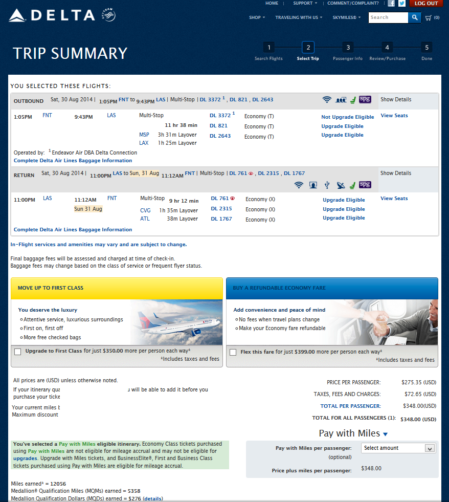 This one works both weekdays and weekends and is one for you DTW flyers (hey get in your car and drive to Flint, it ain’t that far away) 🙂 If you have some weekdays off the price is a sub 6CPM and just over that if you want to burn your labor day weekend on Delta jets! Here are the weekday numbers:
