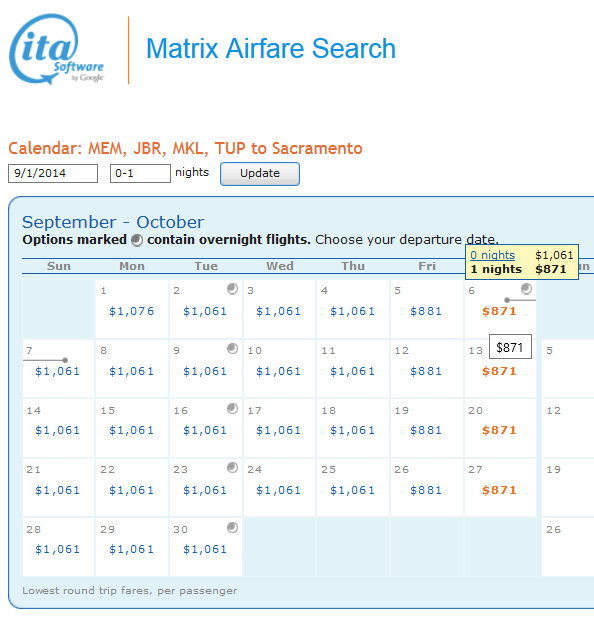 My personal feel is 7CPM coach and 10CPM 1st should be tops for a weekend run but this is still a very relaxed run for the price and many open weekends in SEPT & OCT. You will have to overnight but dinner in SMF and then fly home Sunday, what is not to like. Take a look anyway: