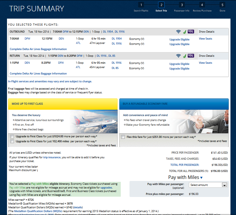 Best part is NO red-eye so out and back in one day. That is a nice way to MR I must say.