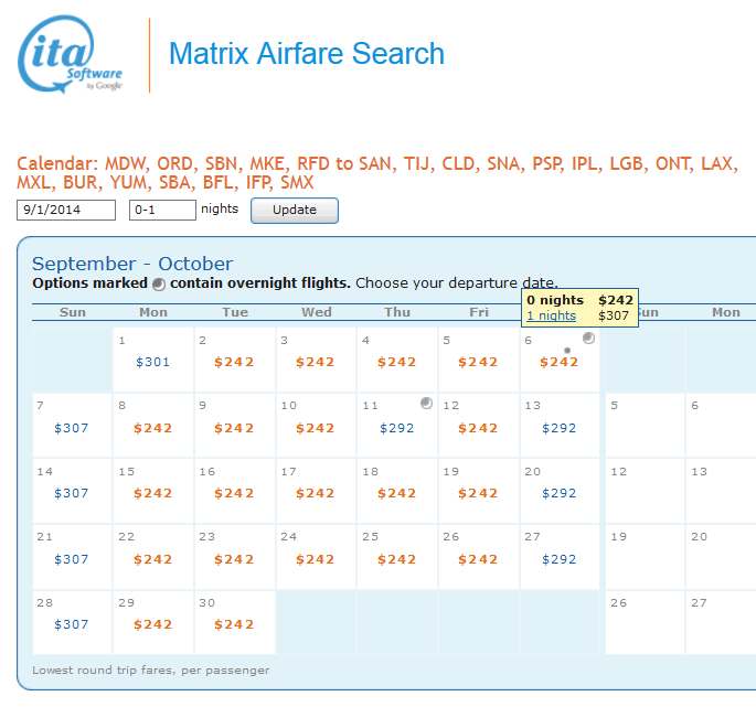 Oh I like this one and if you are NOT mileage running in Sept this year there is something wrong with you ;-)! This one can work from ORD or MDW for the same price and is wide open weekdays or some weekends. Here are the numbers: