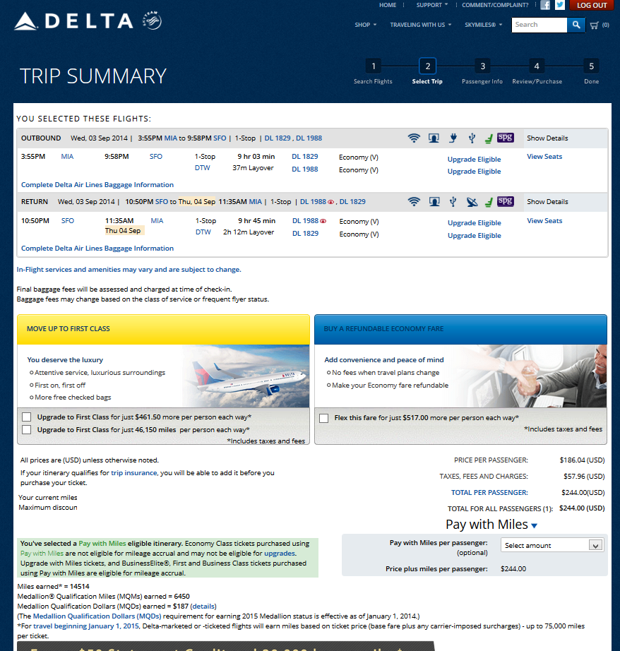 With a HT to FT on this one it works nice weekdays FROM MIA and some weekends FROM SFO. The price is really nice and you want to route via DTW for max yields. Here are the numbers: