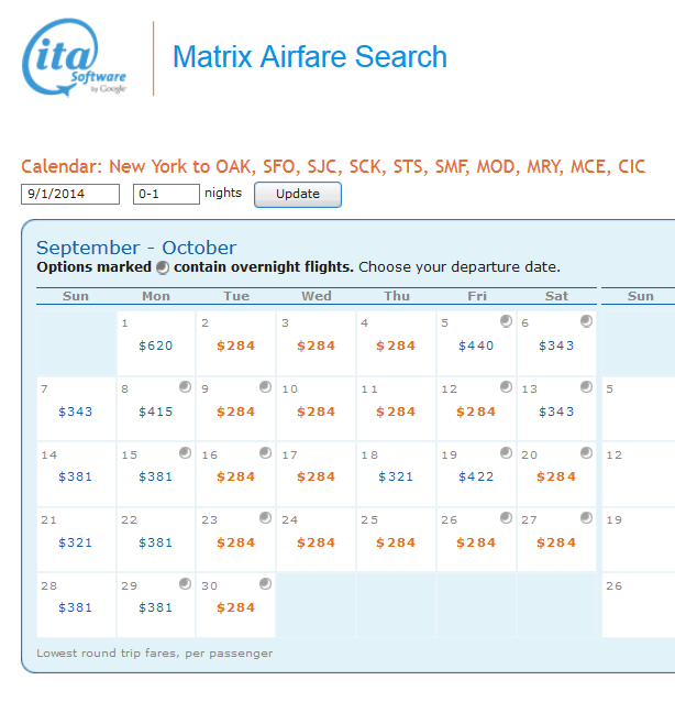 Matrix is not really showing everything right and a HT to reader Louie for sending me this one to get started. He points out you can for a few bucks more do a weekend run with this too. Txs as always for tips! Here are sample numbers: