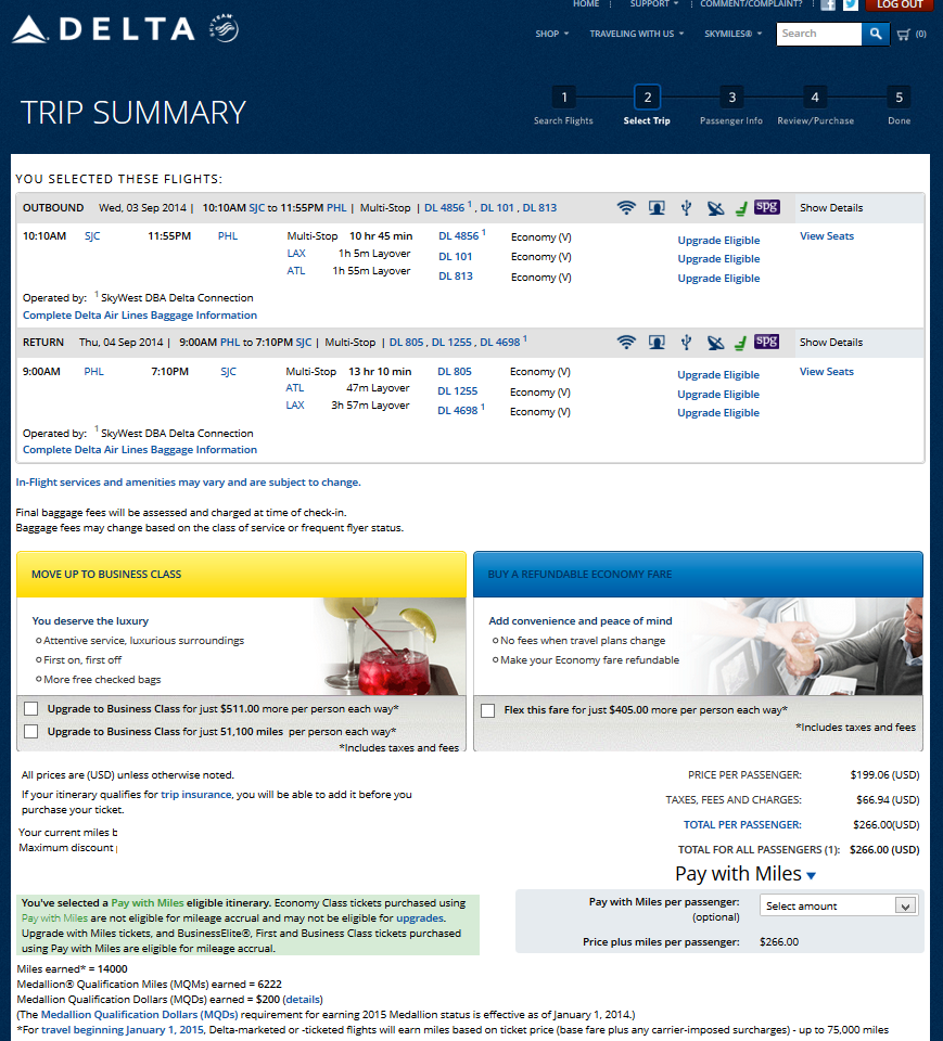 San Jose to Philadelphia $266 & 6222MQMs at 4.3CPM weekday overnight stay Delta mileage run
