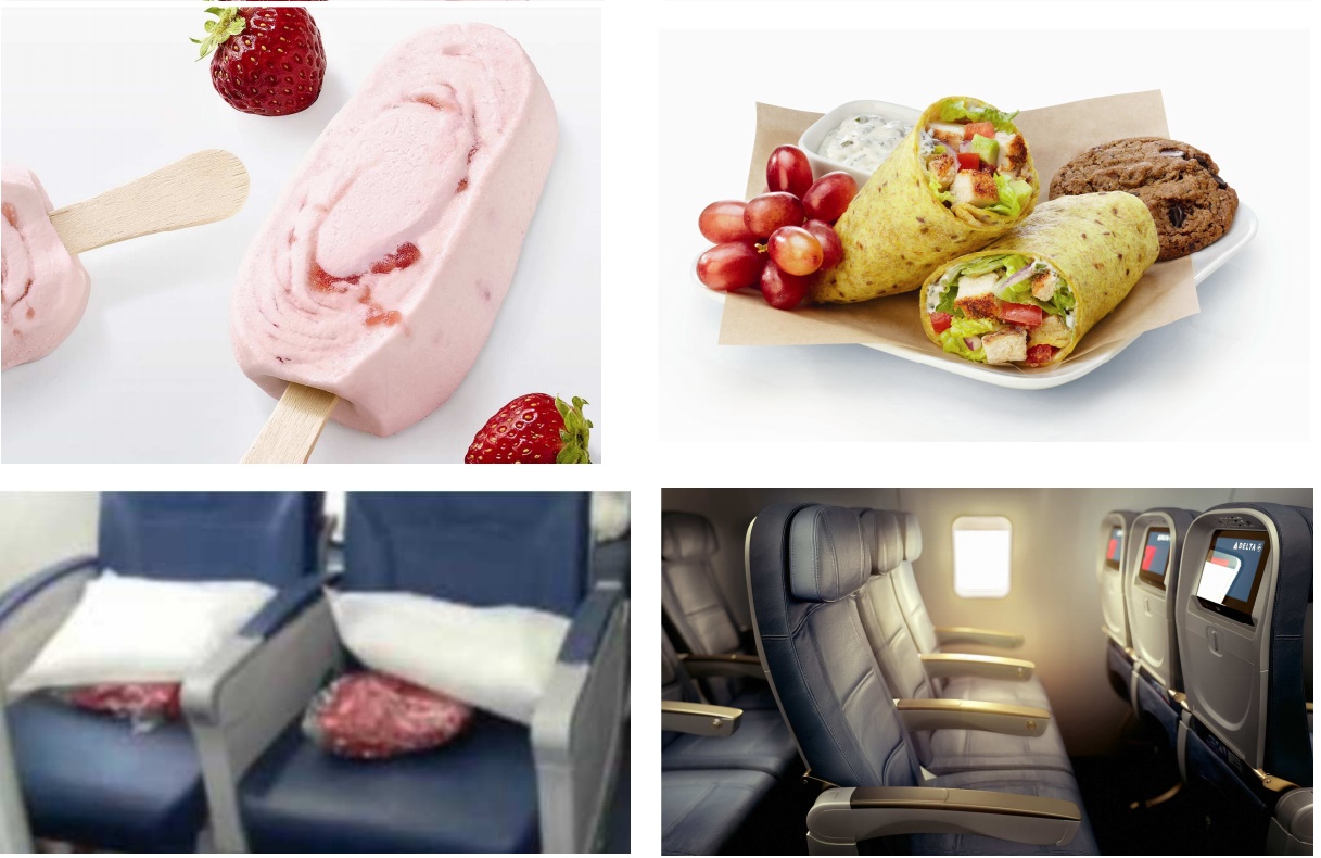 Economy Comfort customers will receive a complimentary pre-set pillow and blanket on their seat while they board the aircraft. After boarding, Economy Comfort customers will be offered a Delta sleep kit, including eye shades and ear plugs, as added amenities. During flight, Economy Comfort customers will enjoy complimentary Luvo snack wraps and a full-size bottle of water for all flights and Luvo frozen yogurt bars as a mid-flight snack on most flights except those flights leaving the West Coast after 9 p.m.” – Delta Corp
