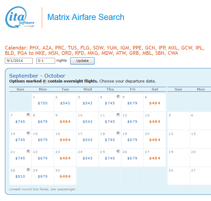 This one is just TOPS for a weekend 1 day mileage run in 1st class. I mean you fly out and back same day all in 1st class. Get a 1 day GoGo pass and you are set for $8-16! It does work from Chicago to PHX just not as many open days till the end of the year. I am thinking about some November or December midweek days for myself maybe. Here are the numbers: