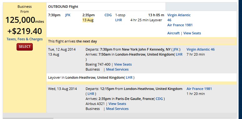 Now I don’t see Delta investing 49% in KLM/AF and I sure hope that is not what it’s going to take for them to give us a seat or two; I mean if you search for a flight to CDG in Paris you are going to be hard pressed to find a single seat over the water any day at ANY award price on Delta.com – that is an issue Delta NEEDS to fix in 2015! – René