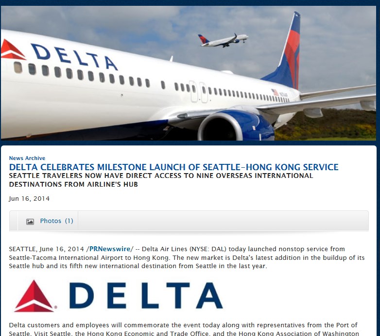 There have been a plethora of PR statements from Delta today not least of which is that SEA-HKG is part of the solidifying of the airport as an official Delta HUB airport. Alaska had better just get out of the way as big brother Delta is taking over. Let the speculation of about just how much longer they can hang on begin!