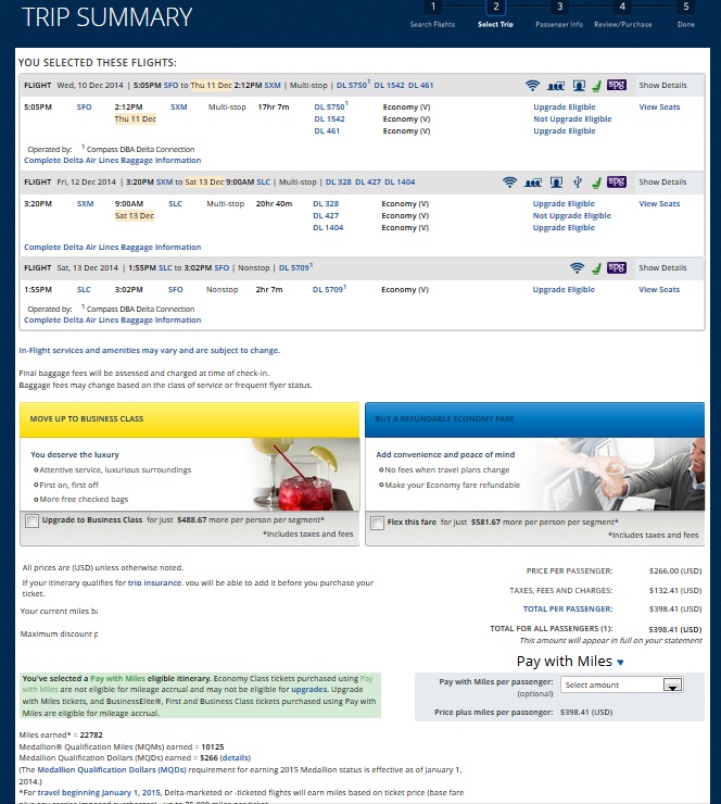 Oh this one is back (we had this deal before in coach and biz). Thanks for FD for getting me started looking. This one you have to use ITA Matrix to start and then choose the multi-leg search tool to get MAX MQMs and routes. Delta.com will not show all the options. Then again you may not want them all. Also you may forgo some MQMs to get full flats now that we have a shot as DM & PM for an upgrade LAX-JFK. Anyway play with this one as sub 4CPM to go to Maho Beach in December is just, well, FUN (many other open dates too)! Here are the numbers: