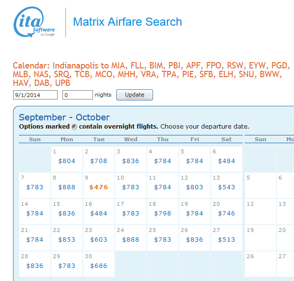 There are also a few IND to the west coast September weekend runs but most require an overnight and are tracking around 7-ish CPM in coach. To me, I would rather pay a little more and fly 1st. If you are a CVG person you could think about the drive to IND or wait for my next post up soon 😉